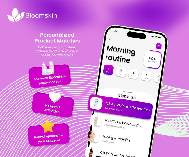 Whether you’re battling dryness, acne, or simply looking to enhance your glow, BloomSkin delivers a smart, science-backed regimen just for you. We combine data, science, and user feedback to ensure every routine is tailored and effective. With BloomSkin, skincare becomes smarter, simpler, and truly personal.